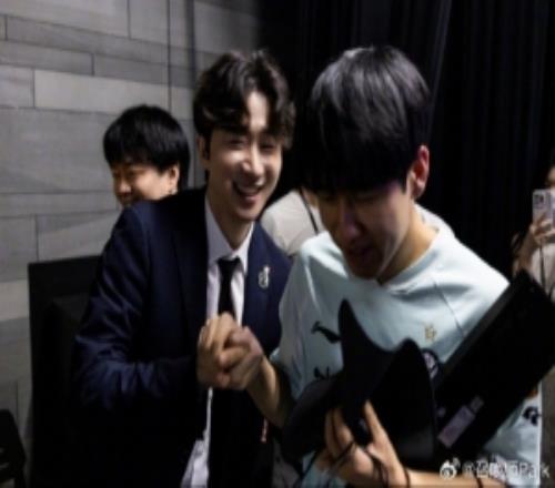 管泽元分享和齐达内合照:昨日在虹口足球场踢球碰到一个光头大爷