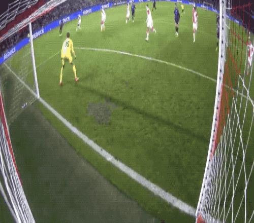 第35分钟,戴上队长袖标的萨卡操刀主罚,球速快角度刁,门将判断正确也无济于事,枪手取得领先,这也是萨卡本赛季欧冠的第2个进球。