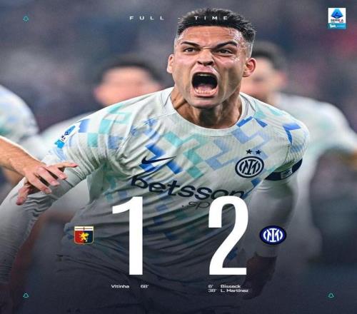 北京时间12月15日,在意甲第15轮的比赛中,国际米兰依靠比塞克和劳塔罗的进球客场2-1战胜热那亚,以1分优势重回积分榜首位。